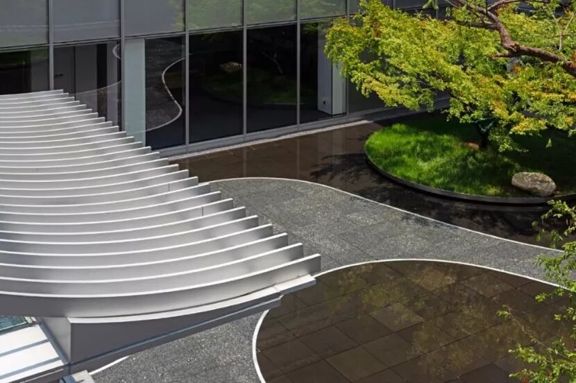 楼尊之前,更有西湖园林框景笔法,景雕塑、景墙等层层叠叠的景观,营造庭院深深的幽静,体现内敛、含蓄、悠远的审美趋向。