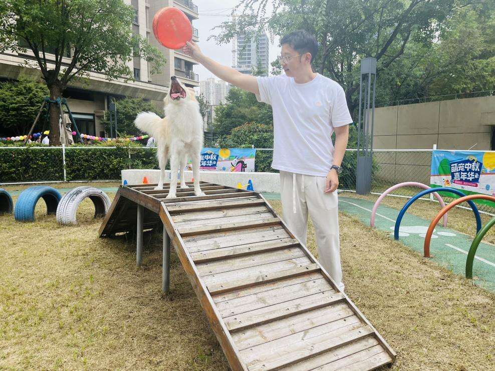 秋风飒爽,小区萌宠乐园,一只金色的拉布拉多敏捷地越过栅栏,穿过隧道,在欢呼声中冲向终点线——这是永升服务杭州宸宇府小区萌宠游园会上的精彩一幕。
