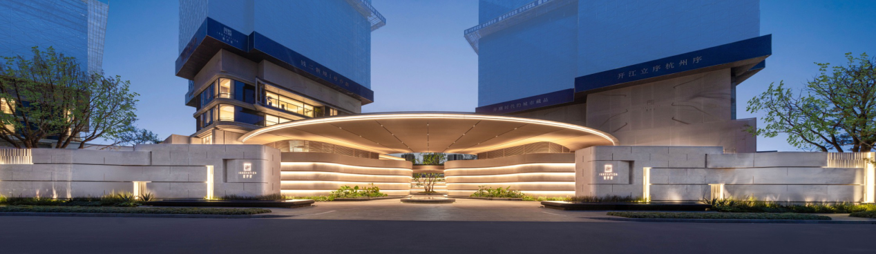 杭州的杭序府项目,作为招商蛇口TOP序系在钱江新城二期的封面之作,以“计容新规后钱二首个架空平台住区”为亮点,通过整体抬升约3米的创新设计,重塑社区空间层次。项目携手西泠印社,将金石文化与现代艺术空间相融合,外立面运用双曲面石材与大面玻璃(局部铝板线条及涂料),室内打造约170-370㎡宽境户型,在形式与功能间寻得平衡。