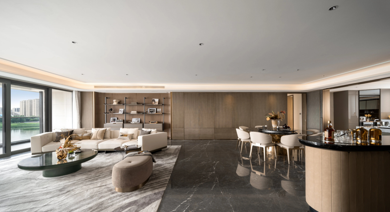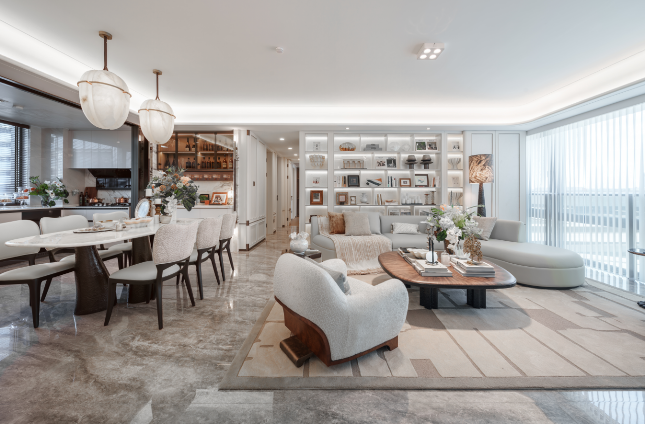 在智慧领域,绿城家与华为等品牌合作,将不同空间打造为“场景切换大师”。杭州晓澜玉华的150寸巨幕投影、模块化沙发与社交长桌,通过智能联动一键转换私人影院与会客模式;杭州宸风逸庐的电动窗帘与环境光感系统,则让唤醒与休憩充满仪式感。值得一提的时,依托绿城家独特的提前进场、科学部署模式,所有智能设备点位均在施工前期精准预留,避免后期改造的杂乱。