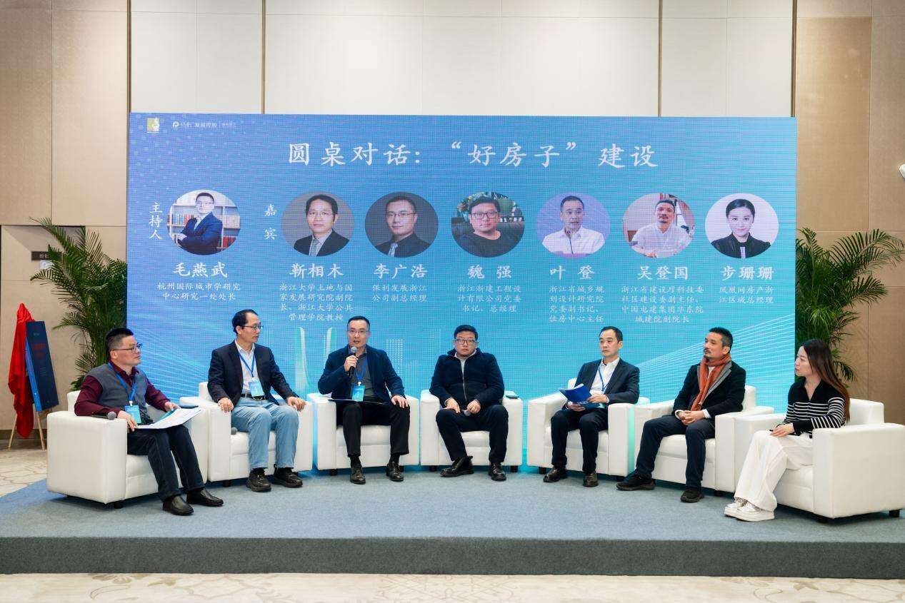 圆桌对话环节,浙江大学土地与国家发展研究院副院长、浙江大学公共管理学院教授靳相木,保利发展浙江公司副总经理李广浩,浙江浙建工程设计有限公司总经理、教授级高级工程师魏强,浙江省城乡规划设计研究院党委副书记、住房中心主任叶登,浙江省建设厅科技委社区建设委副主任、中国电建集团华东院城建院副院长吴登国,凤凰网房产浙江区域总经理步珊珊围绕“好房子”建设进行分享交流。杭州国际城市学研究中心研究一处处长毛燕武主持。