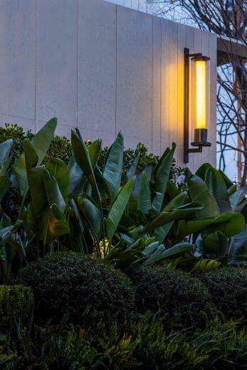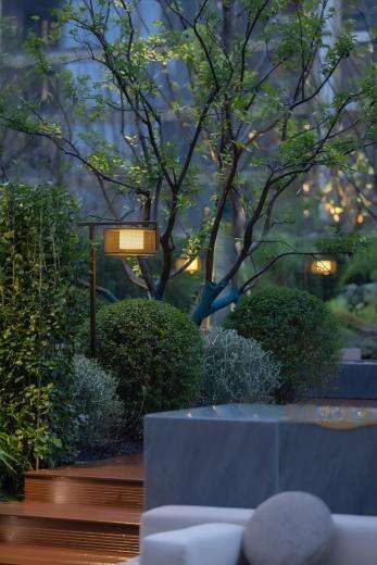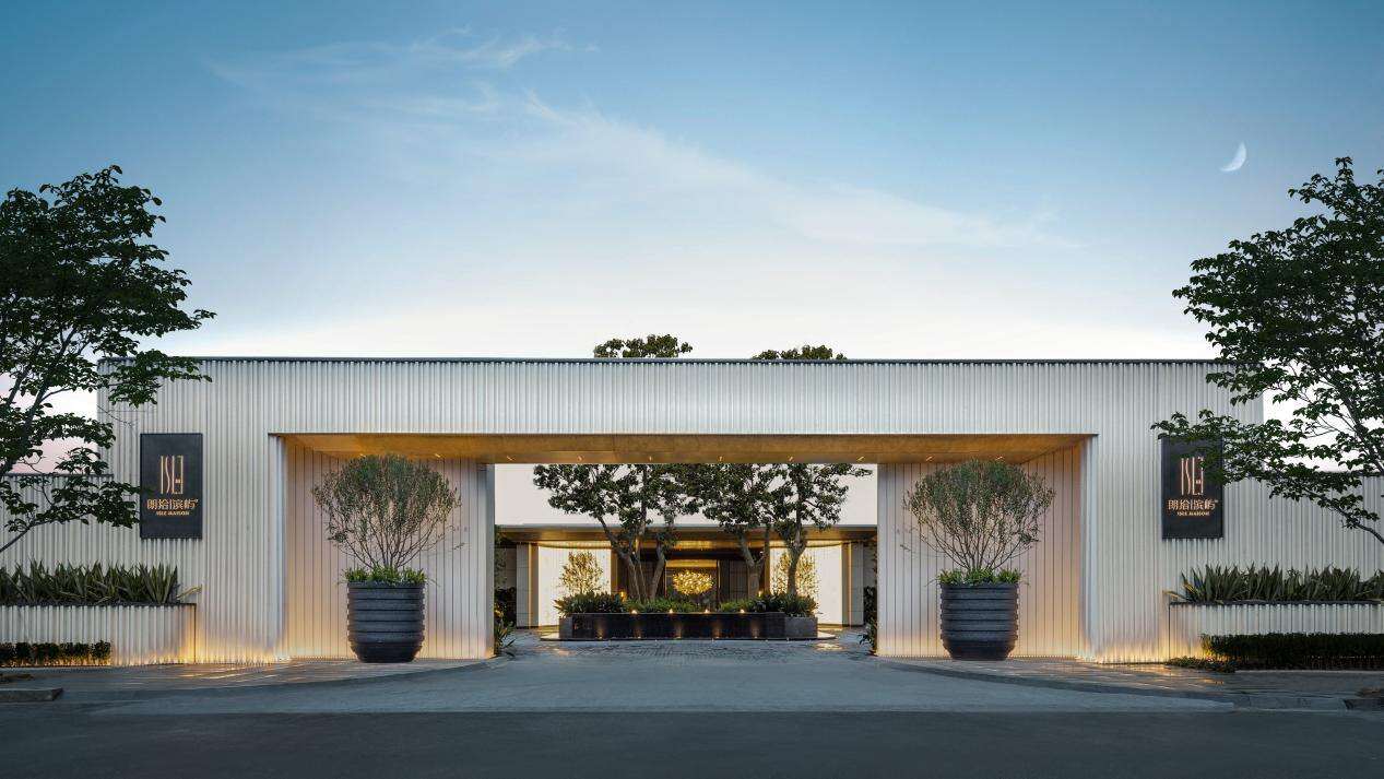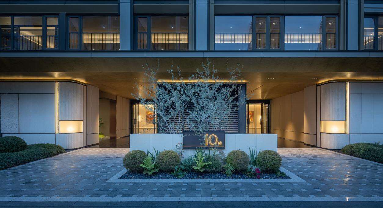 第一进,以曼谷四季酒店为蓝本的拾系专属“宝门廊”,横向延伸达约34米,两侧点缀考究的古铜标识,配合大体量花钵,将精致度假氛围感拉满;第二进,环岛式落客庭院穿过宝门廊,便来到了落客庭院,中央是2棵大沙朴树相互簇拥,形成仪式感的自然迎宾景观。第三进,归家大堂,承载业主归家、社交的场所功能,也规避了视线与建筑直接对穿的情况,以静谧、雅奢、放松、精致的风格,回应当代都市人群的精神诉求。