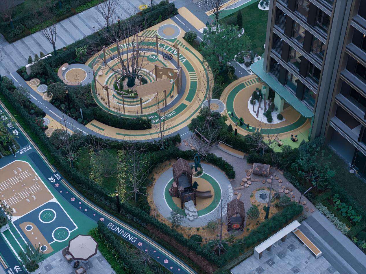 微风绿屿及其周边景观与各个主题架空层形成了一个超级景观体系——阳光会馆。这更像是社区的生活能量场,以不同功能盒子的分布,充分汲取自然活力,让景观以多元、精细和更微妙的方式参与到业主生活的方方面面,使得越来越多人开始愿意为家楼下的活动而停留,产生兴趣,发生互动。让度假生活融入日常,业主无需离开社区,便能感受自然景致,享受闲适惬意的休闲时光。
