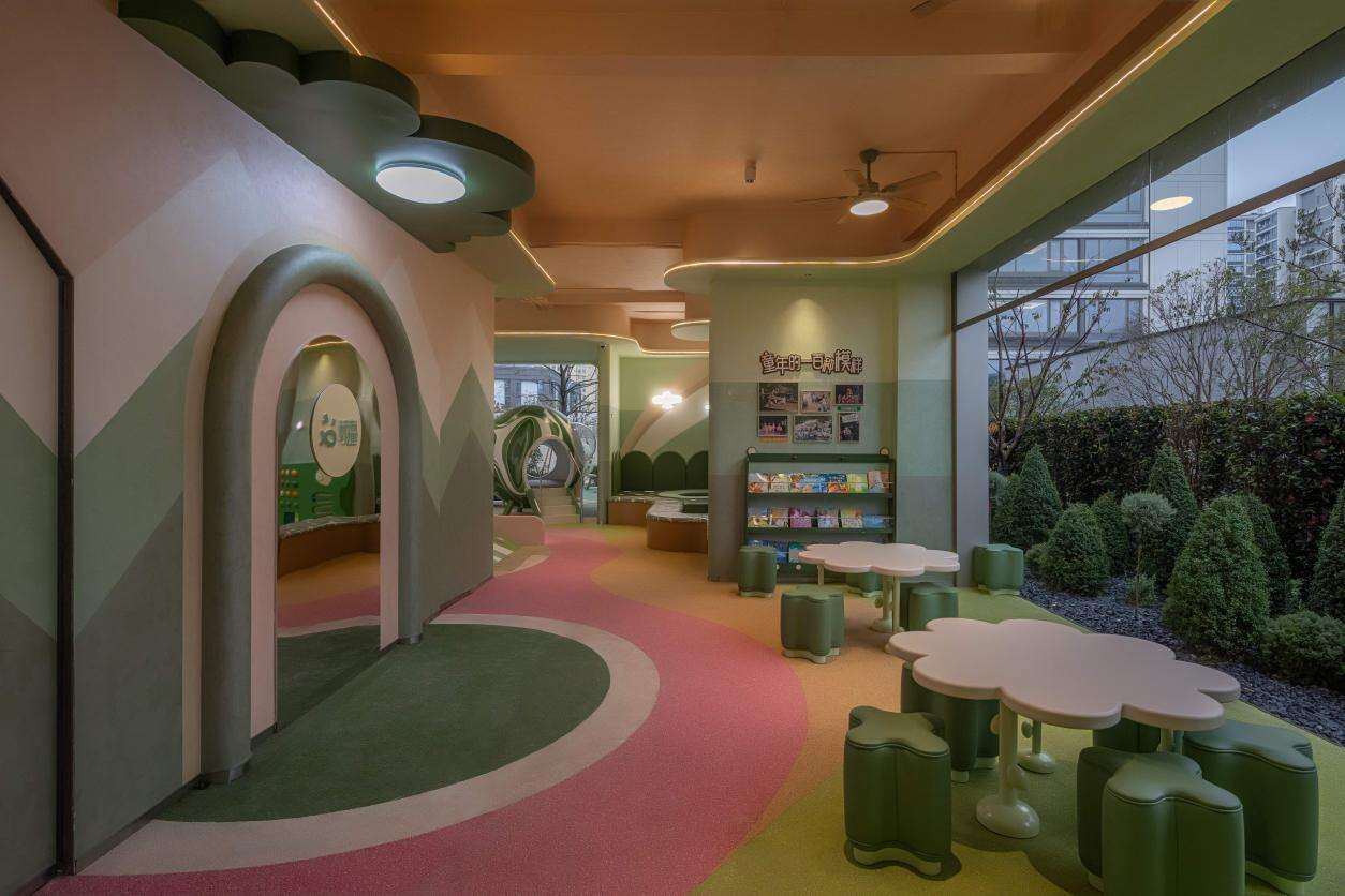 比起单一的植物品种,人们更渴望低头就能闻到、摸到、品尝到不同类的植物的环境。“甜蜜伴盒”围绕园艺手作主题设计,与旁边的植物园形成内外串联,孩子们可以在此游戏、观察昆虫、阅读标本和绘本,也可以做植物手工。植物园设有取水装置,孩子们也可以体验合作取水浇灌植物的乐趣。这里将成为业主亲子活动的领地,从线上号召到线下聚会,最终联结为快乐、活力、丰盈的志趣之地。