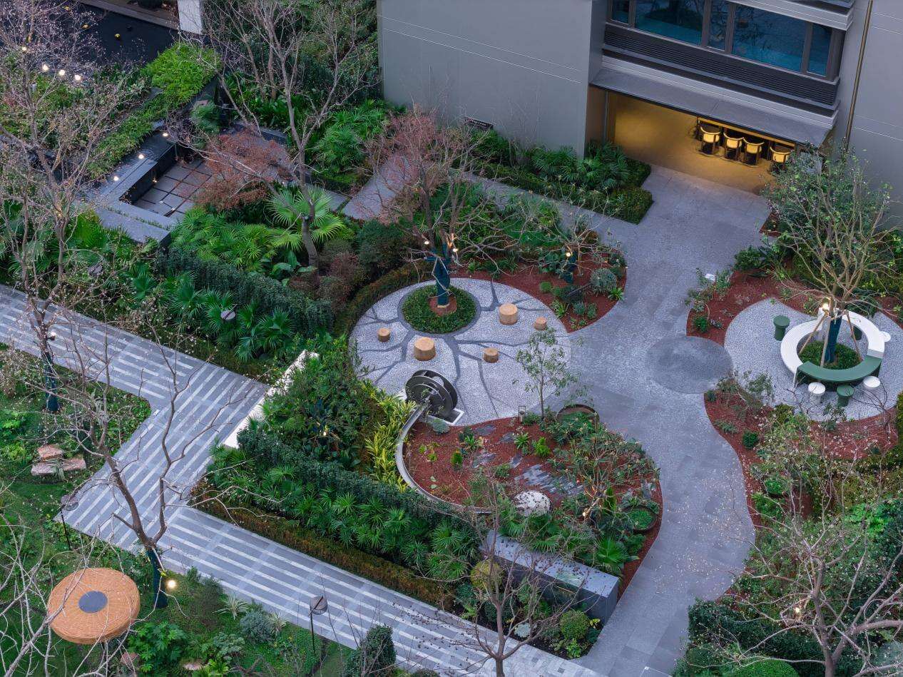 朗拾滨屿对于空间思考的进阶,是让大家自然而然地宅在家楼下,以风景串联所有功能场景,消融建筑与自然的边界,将内外景观进行深度融合,让归家成为度假的开始。