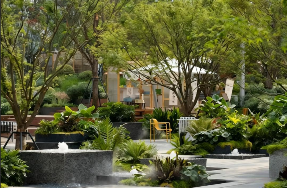 而再往通往园区内部,则更像是一座度假公园。景观体系汲取九溪十八涧灵感,汇成生活之诗,风雨连廊是四季的沉浸式风景剧场,架空层和会所则是连接社区活力的精神集散地。