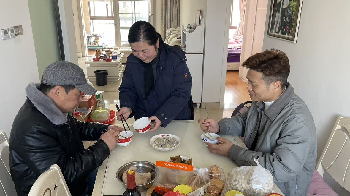 “我已经有好几年没有这么热热闹闹地过除夕了。”李奶奶感慨道。往年春节她只能与海外工作的儿子视频通话,今年她第一次和邻居们一起吃年夜饭、包饺子。旁边的张奶奶正给邻座的老人夹菜,又往身边物业管家的盘子里夹了一只鸡腿。“这么多年除夕,都是电视机陪着我,今年身边突然多了这么多人,反倒有点不习惯——是高兴得不习惯。”张奶奶笑着说。