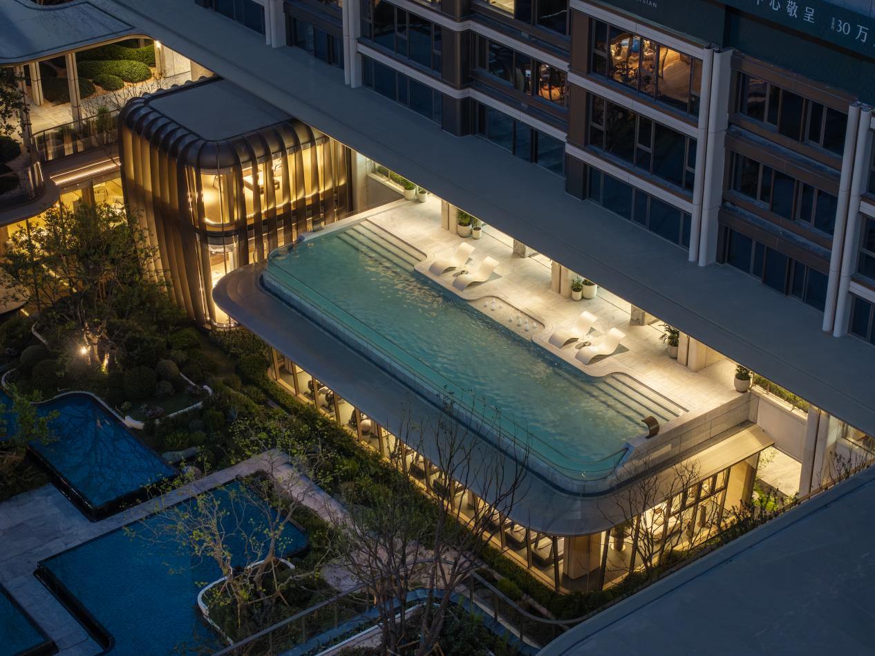 另一个是未来科技城的“杭州保利·天奕”。在这个代表着杭州速度与效率的地方,保利却要给快节奏的生活按下一个“慢放键”。通过“超级底盘”的规划思维,一座约30万方的全抬高“立体松弛岛”拔地而起。约5.4米的整体抬升,不仅区隔了喧嚣,更在无形中构建了一种归家的仪式感与私密感;超大中央园林与全龄社交场景的植入,让那些在代码与资本中穿梭的精英们,能在中心繁华里找回那份久违的、从容不迫的“松弛感”。天奕,则是在效率至上的时代范本里,为高净值人群保留了一处安放身心的诗意孤岛。