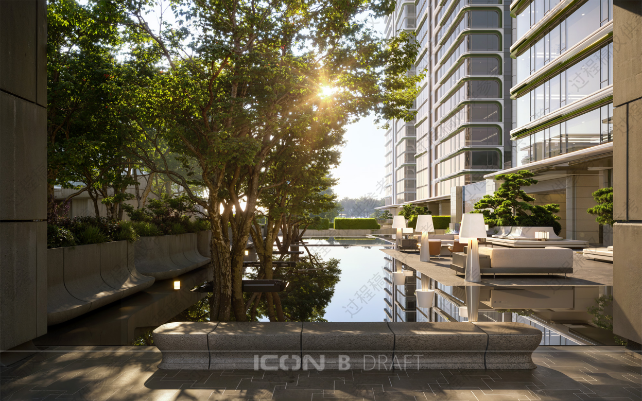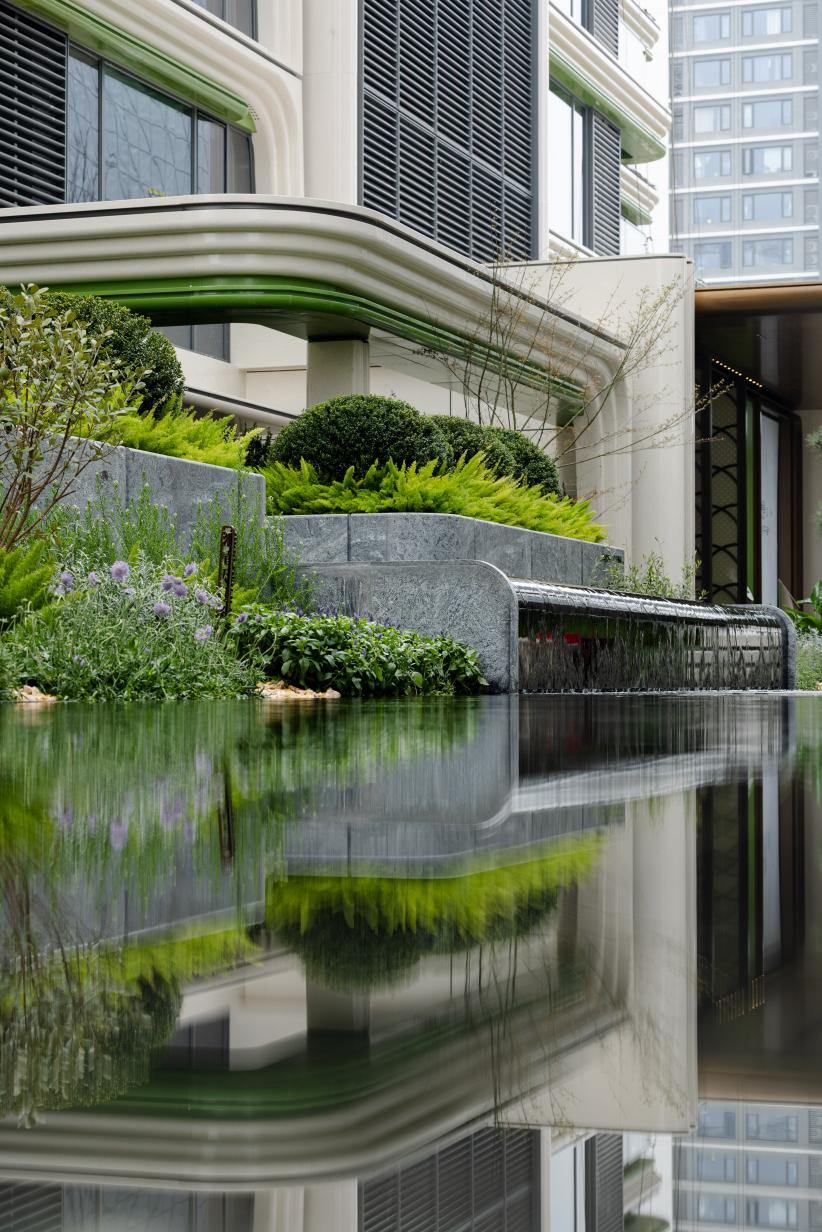 这份克制,换来的是一片可以亲近土地的居所。而约5.4米的台板抬升,又是一次精妙的平衡:既让低区获得视野,又不让建筑脱离土地的温度。站在洋房的窗前,既能看到杭州之门的灯火,也能闻到雨后泥土的气息。