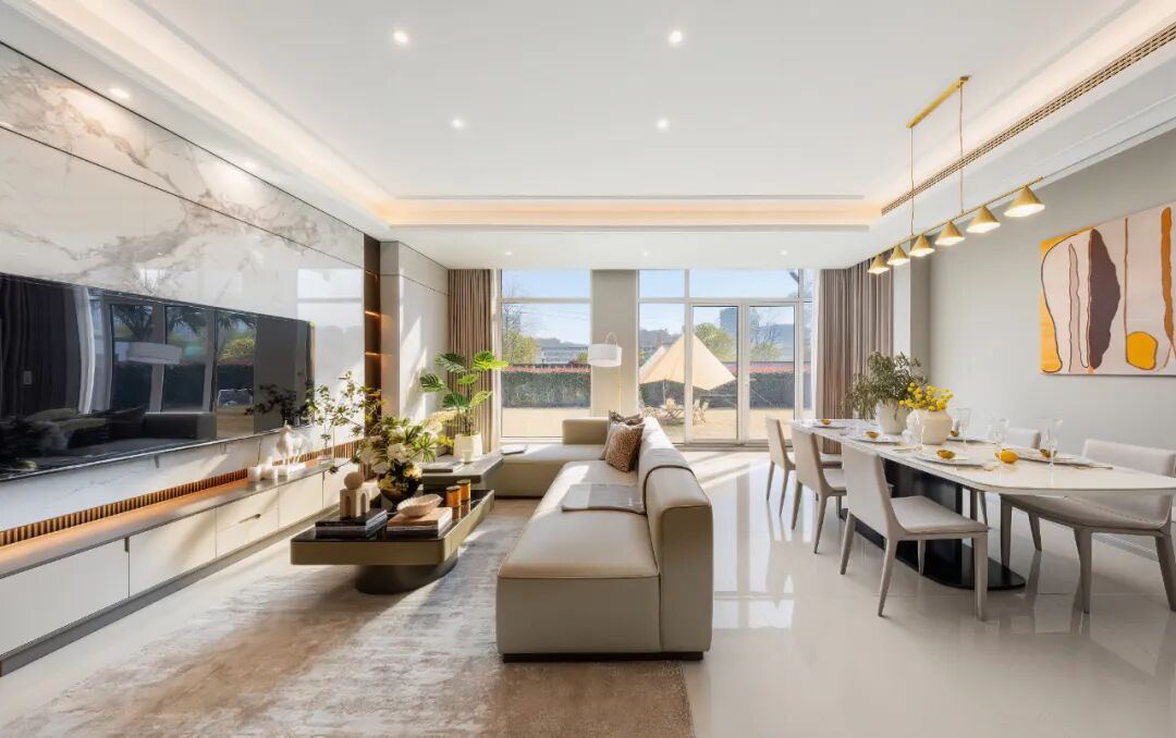 在内部软装部分,暖屋望涛月明排屋更是配齐空调、冰箱、洗衣机、智能门锁等全套精装,拎包就能住。