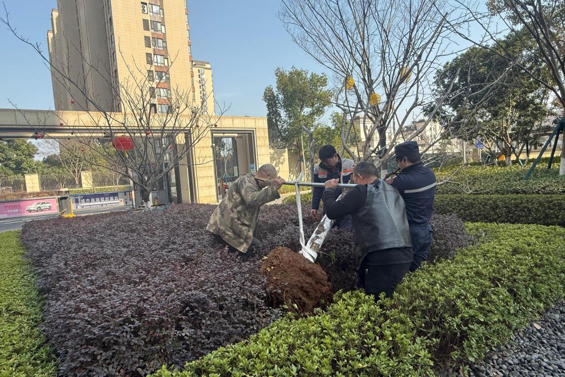开春以来,永升服务的绿化养护团队就化身“社区园丁”,对小区绿化环境进行了全面“体检”,重点标记黄土裸露、植被稀疏、死株缺株等问题。小区里零零散散的黄土裸露、死株缺株点位像脸上的瑕疵,格外扎眼。“醒春焕绿”行动,就是要赶在雨季到来之前,把这些‘斑秃’全部补上。