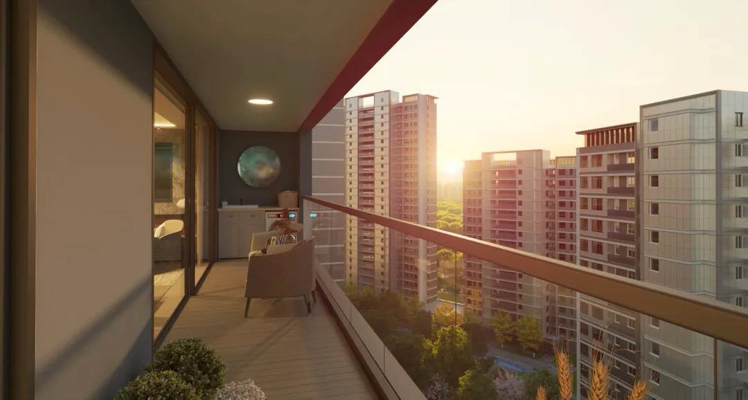 约8.7米三开间阳台,是户型的另一大亮点,摆上茶桌、瑜伽垫、孩子的画架,甚至是一排花箱,空间依然绰绰有余。它把室内生活向室外延伸,把风景引入日常。