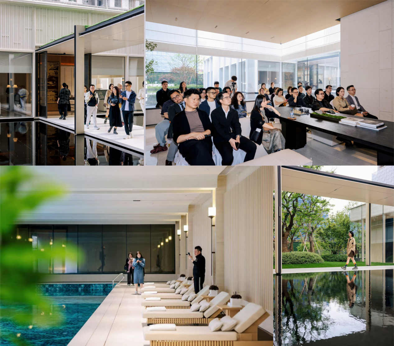 茶室与书吧:茶室清雅静谧,可预约品鉴珍藏老茶。书吧伴水景而读,未来藏书涵盖艺术、建筑、人文等领域,。水院客厅则将无边界水景引入室内,成为天然的“静心舱”,无论是独处冥想还是轻聊会友,都别具意境。