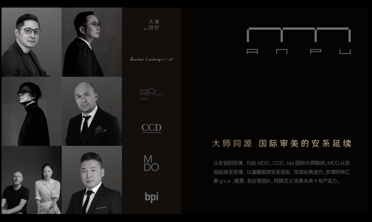 项目集结goa大象设计、顺景园林、名谷设计、CCD、MDO、bpi六大顶尖团队,形成建筑、景观、室内、照明一体化的设计联盟,堪称“全明星设计天团”。