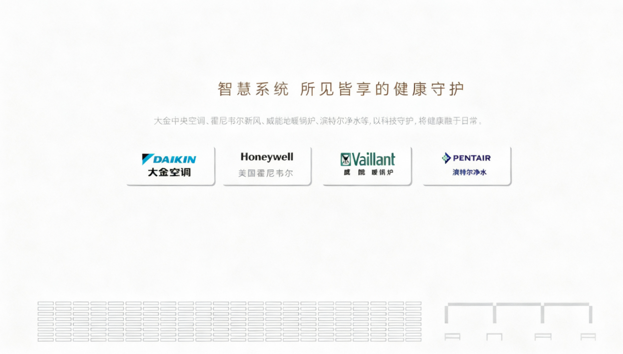 大金中央空调(含厨房独立空调)、霍尼韦尔新风、威能地暖锅炉,构建全屋温度舒适与空气洁净的保障体系,确保室内四季如春。