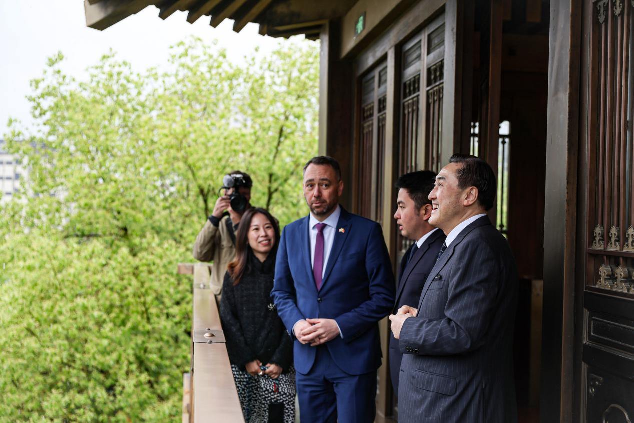 比利时副首相兼外交大臣普雷沃访杭 参观英蓝中心“象外·中比建交55周年当代艺术展”