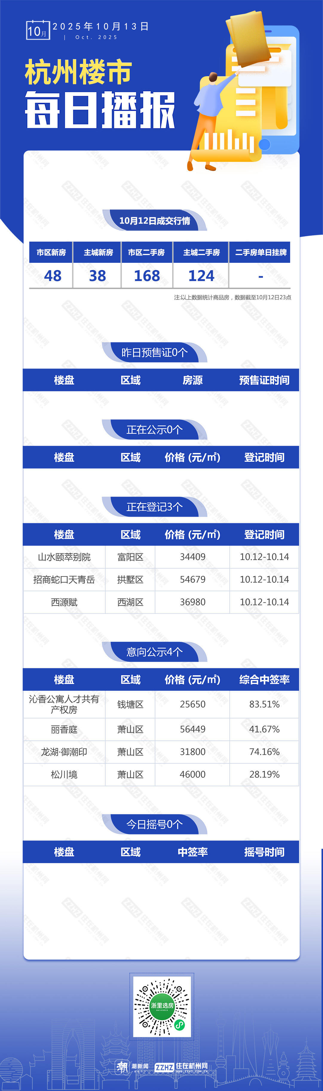 10月13日,杭州新房1盘预售,3盘报名中