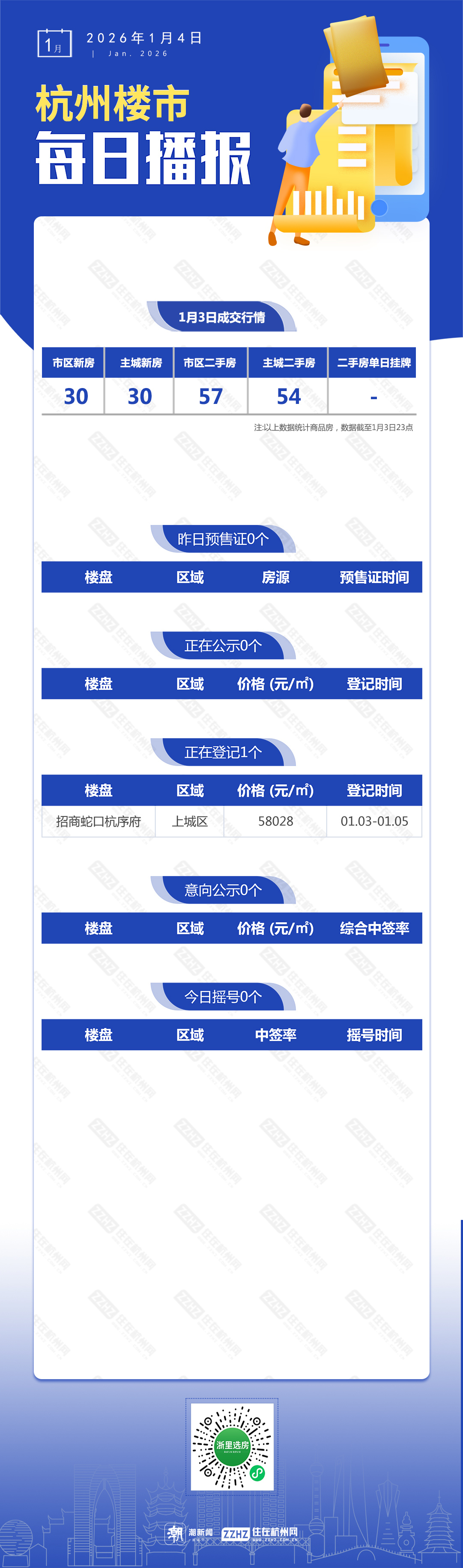 1月4日,杭州新房1盘预售,1盘报名中