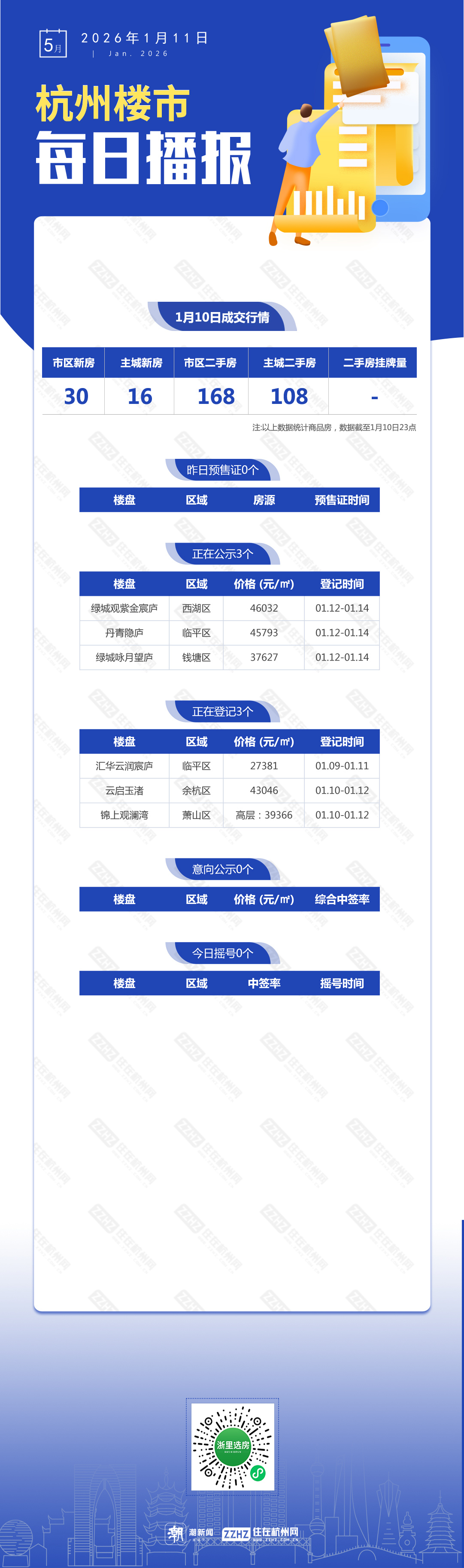 1月11日,杭州新房3盘公示,3盘报名中