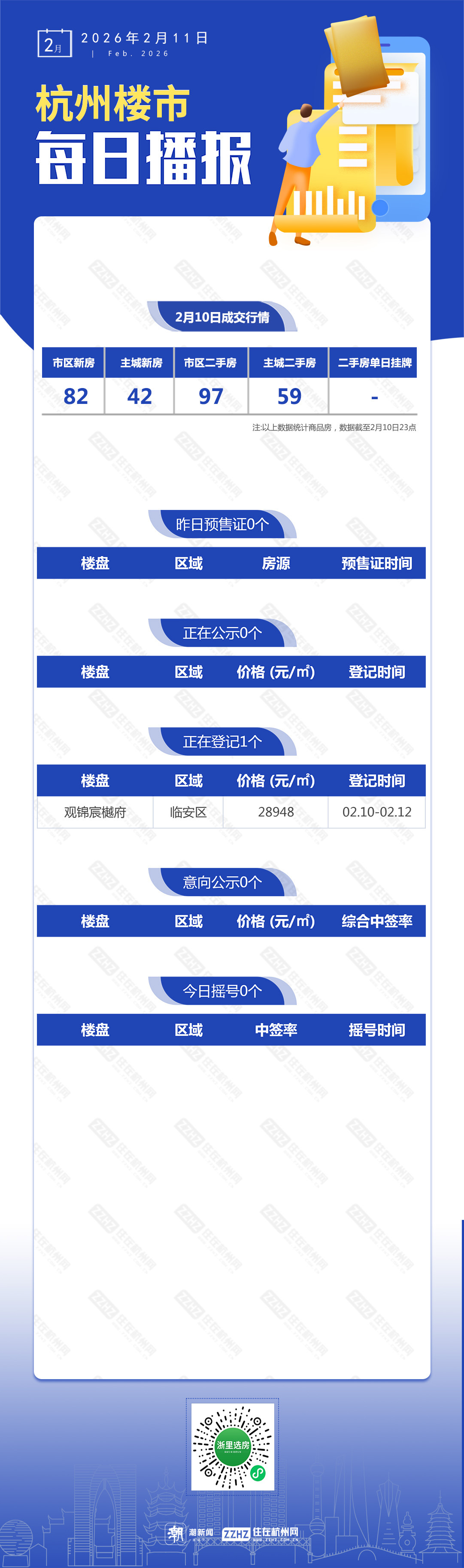 2月11日,杭州新房1盘预售,1盘报名中