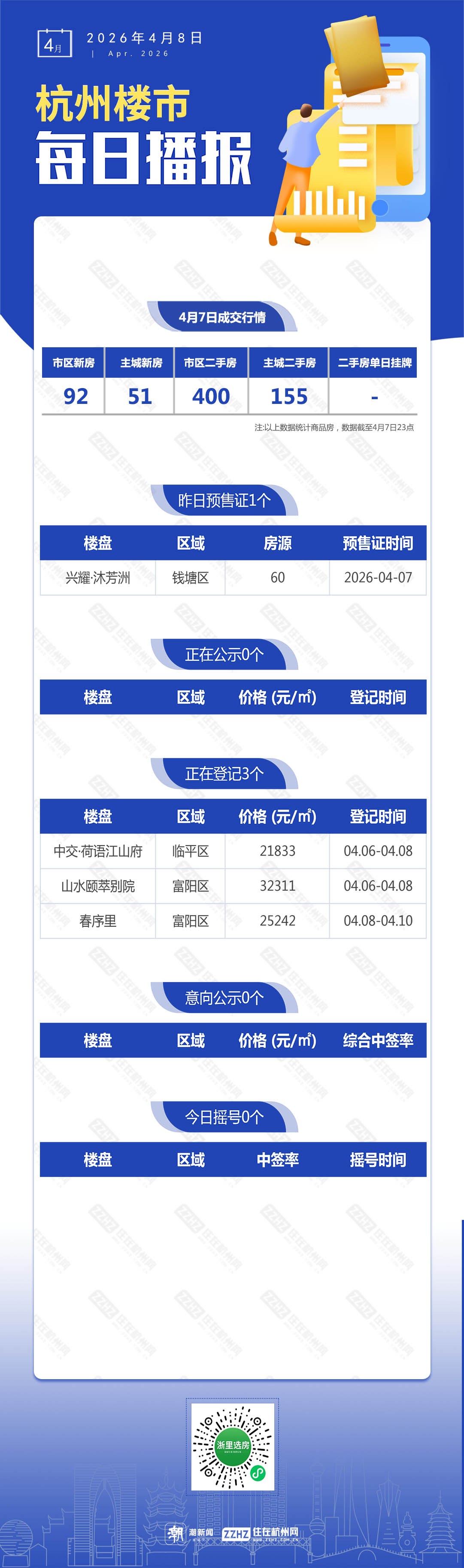 4月8日,杭州新盘2盘预售,3盘报名中