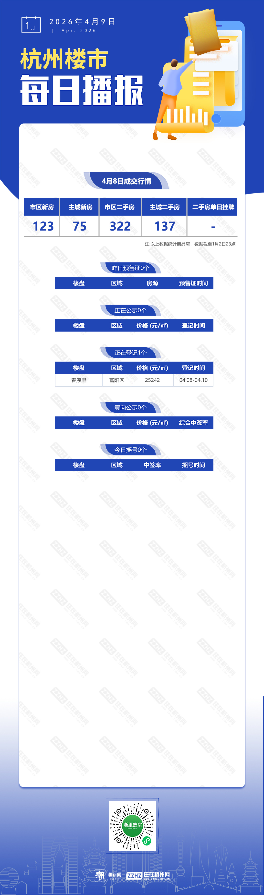 4月9日,杭州新盘1盘报名中