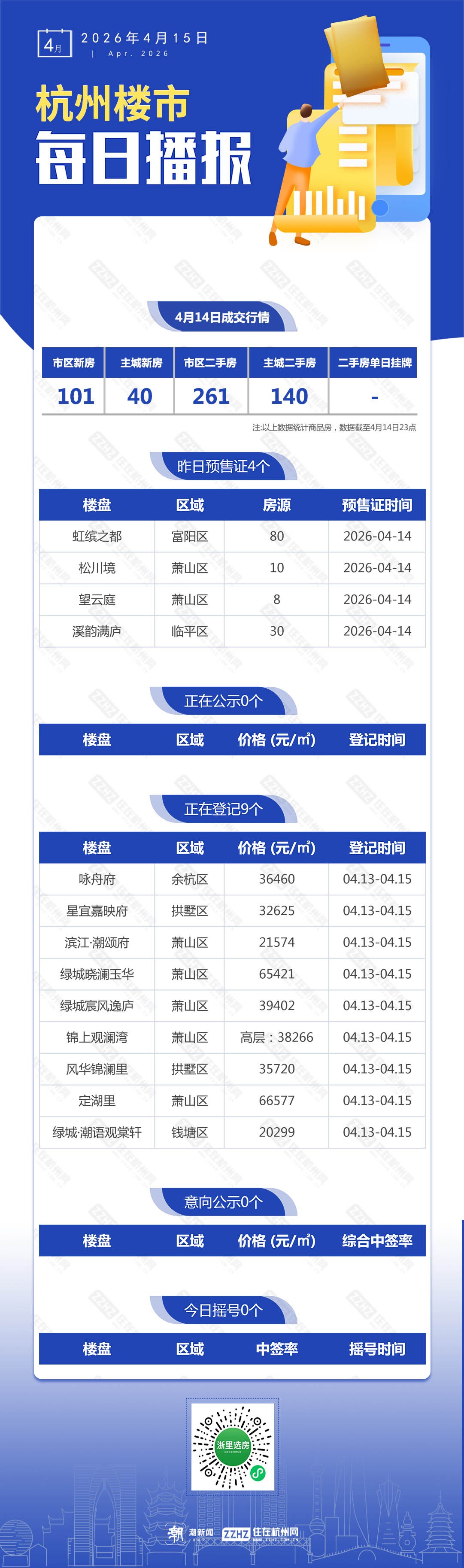 4月15日,杭州新房6盘预售,9盘报名中