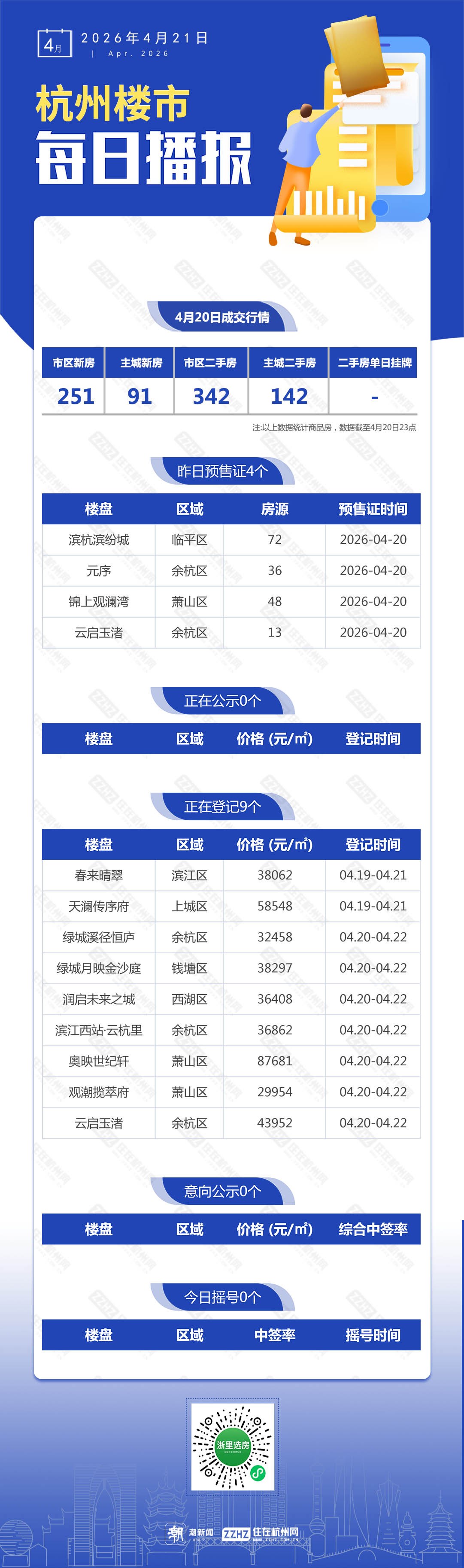 4月21日,杭州新房3盘预售,9盘报名中
