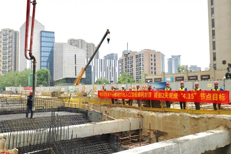 近日中铁一局五公司杭州地铁5号线7标莫干山路站D5出入口最后一块顶板混凝土顺利浇筑完成。