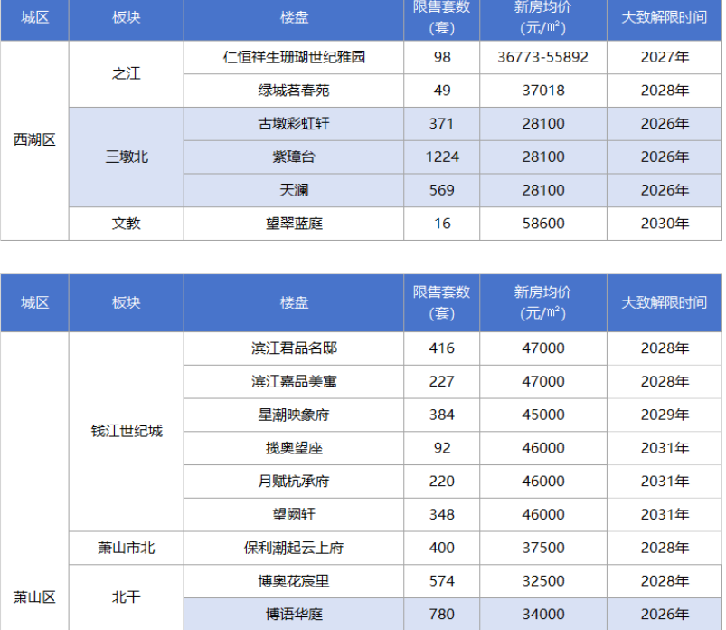 2026年,杭州哪些限售房源将解禁?