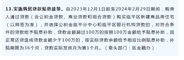 杭州也曾短暂出现过贴息补助。2023年12月,临平区发布促经济加码政策,其中提到购买临平区新建商品住宅,对符合条件的贷款给予1%-3%贴息补助,补贴期限为36个月。