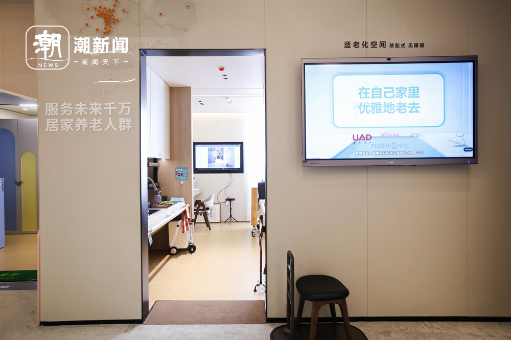 在适老化样板间,许多子女陪着老人参观,现场展示的智能康养系统可以24小时看护老人,子女身在外地也能随时看到家中情况。一位老人转头对身边的儿子说:“有了这个,你就不用老惦记着给我打电话了。”