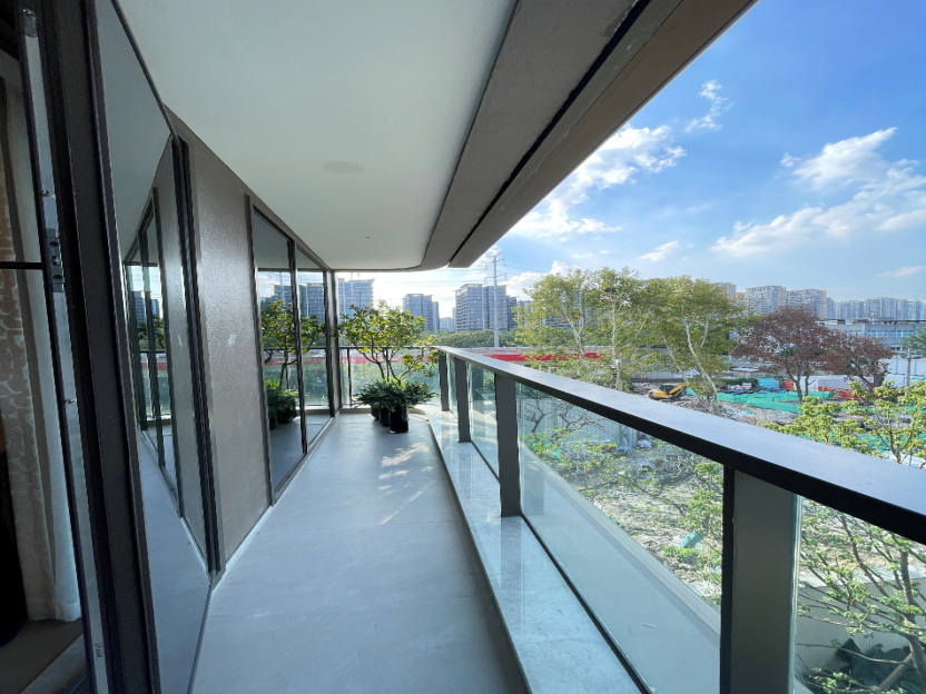 在赠送空间方面,除了将客厅大阳台进行封包交付,四个房间都带了飘窗或阳台;整体 得房率超82%,使用率超90%,收纳空间过10%。