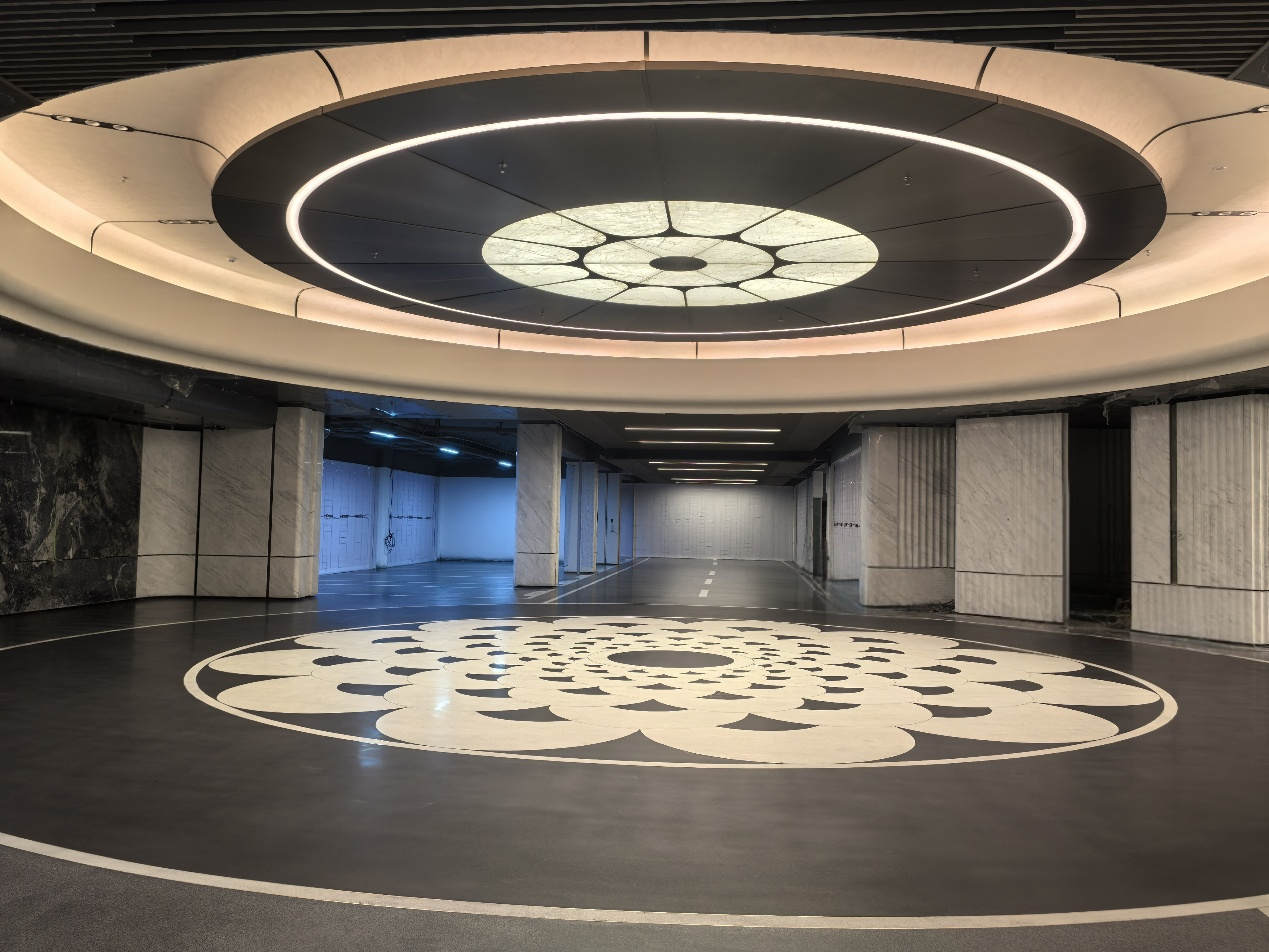 现在市场上比较流行的车库地坪是磨石地坪,它是一种颠覆性的材料,相当于在地库表面铺了一层大理石。优点是耐磨、耐腐蚀,整体无缝,环保性能高,可定制图案。“举个例子,原先我们环氧地坪的厚度只有1-2毫米,现在改用磨石地坪厚度可以做到1-2公分左右。”当然,它的缺点就是施工工期长、成本较高。
