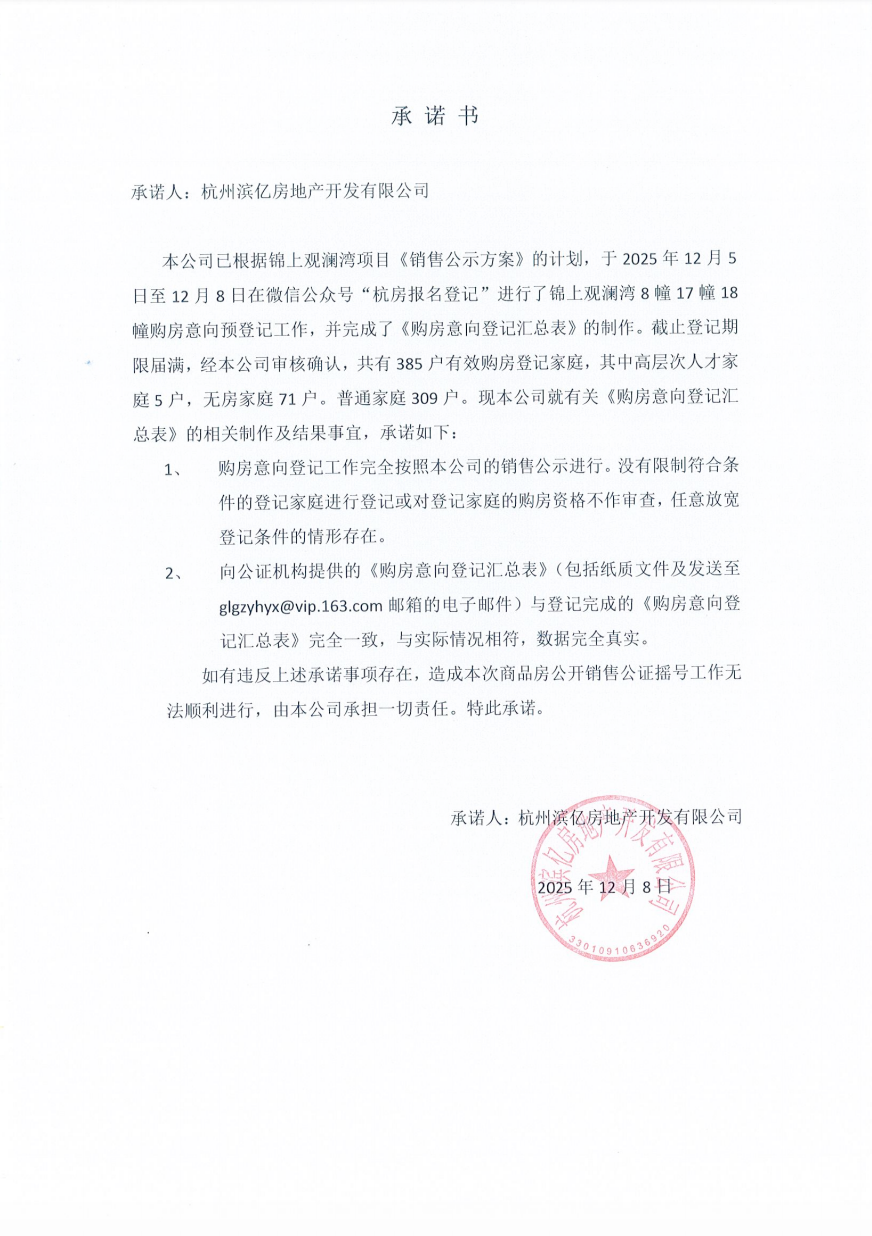 12月8日晚间,锦上观澜发布了《意向客户登记结果公示》:8#、17#、18#,3幢共计88套房源,户型面积112-139㎡,吸引到了385户家庭报名登记,摇号中签率22.9%。