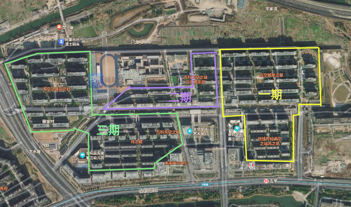 天空之城为地铁5号线五常站上盖综合体项目,总体量高达134万㎡。其中,住宅部分分为三期开发,包含5个小组团。