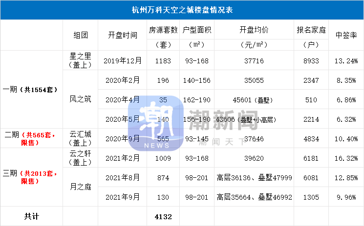 一期星之里、风之筑,房源1554套,于2019年12月至2020年5月期间公开销售;二期云汇城,房源565套,于2020年9月公开销售,并被确定为“热点楼盘”,仅供人才和无房家庭摇号,需“5年限售”;三期云之轩、月之庭,房源2013套,于2021年2月至9月公开销售,同样需“5年限售”。