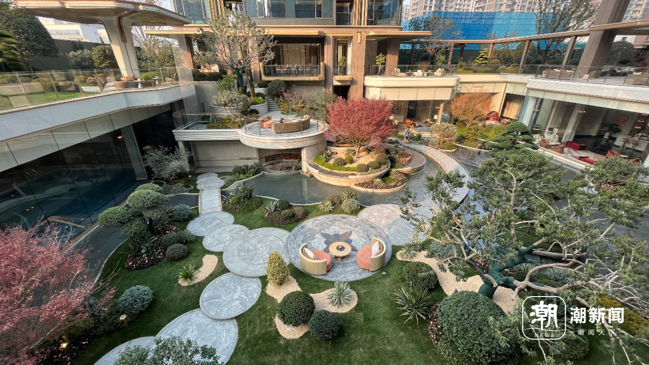 在产品上,潮语江澜府做了一定的迭代,比如打造了高约9米的金色门头,约7000㎡实景示范区,约2700㎡下沉庭院+会所包含恒温泳池、棋牌室、模拟高尔夫、健身房、瑜伽室、女王厅、书吧、茶室、雪茄区、日咖夜酒、儿童区等12大功能区等。
