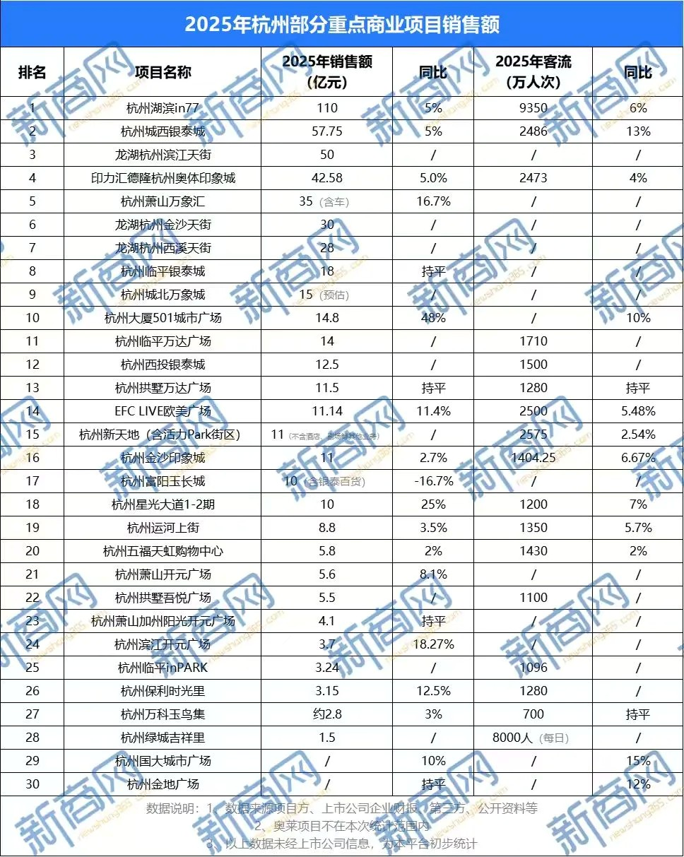 杭州2025年商场销售额出炉,多家商业综合体业绩逆势增长