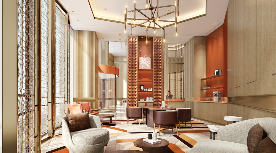室内空间的墙面软包采用爱马仕真皮打造,手工缝制足见打造团队的匠心所在。无论楼幢空间还是室内空间,无论怎么看都像极了大牌秀场。
