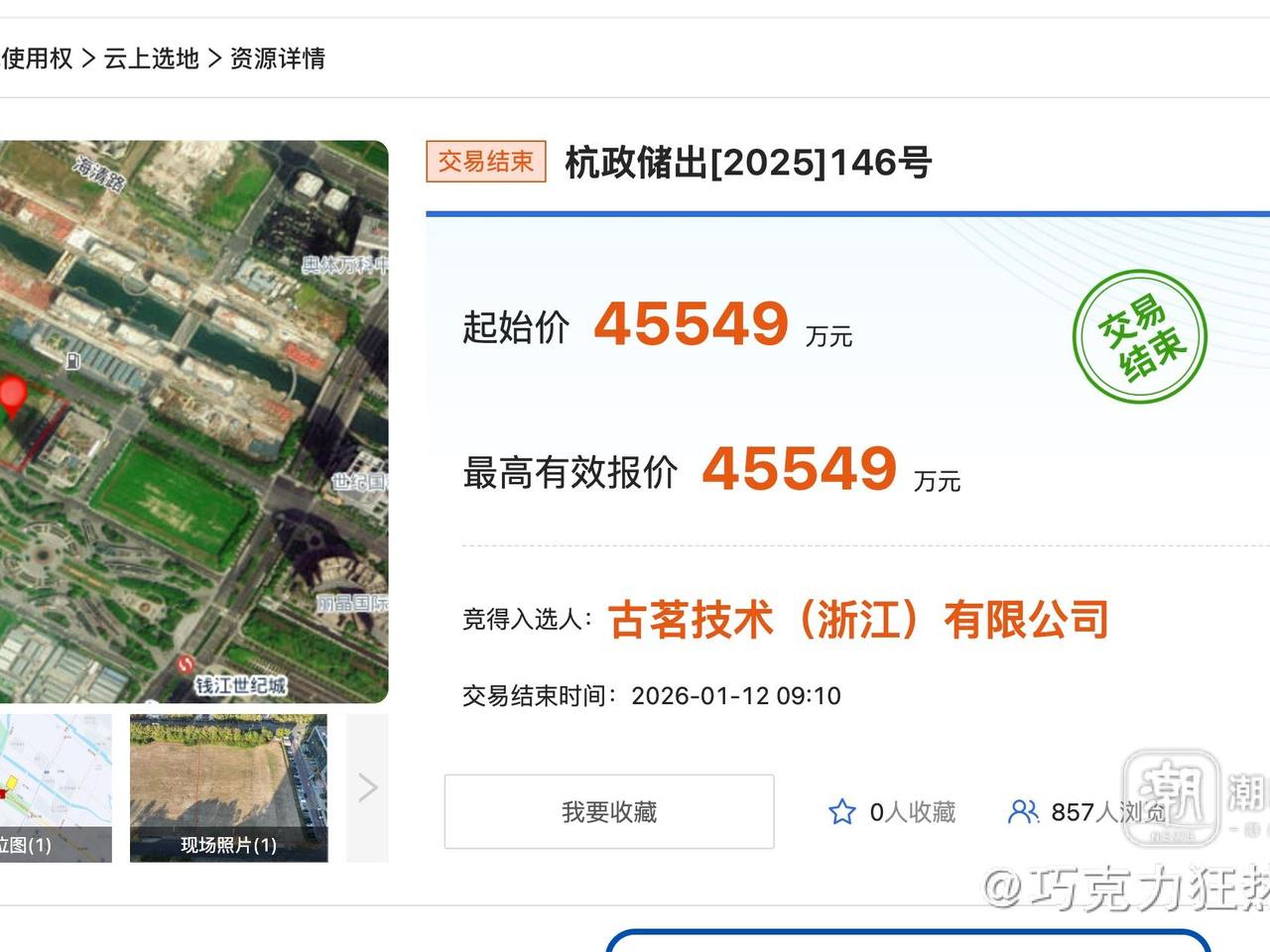 杭州土地12月报 | 单月土地金79.9亿元