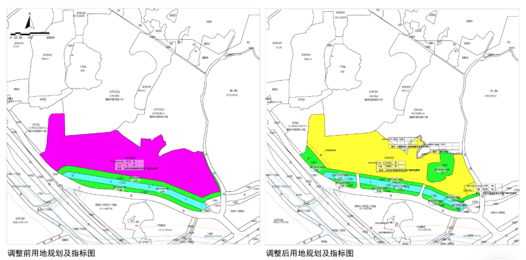 调整内容:拟对XH110101-14及周边地块布局、规划指标进行优化调整地块调整前后指标详见下表。