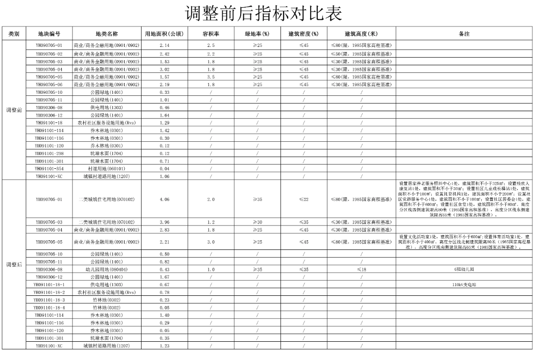 调整原因:为改善片区职住不平衡问题提升片区城市活力,拟对相关地块进行用地布局优化及规划控制指标调整。本次还新增了幼儿园用地;对商业/商务金融用地面积进行了调整;减少了农村社区服务设施用地面积;调整了供电用地位置。