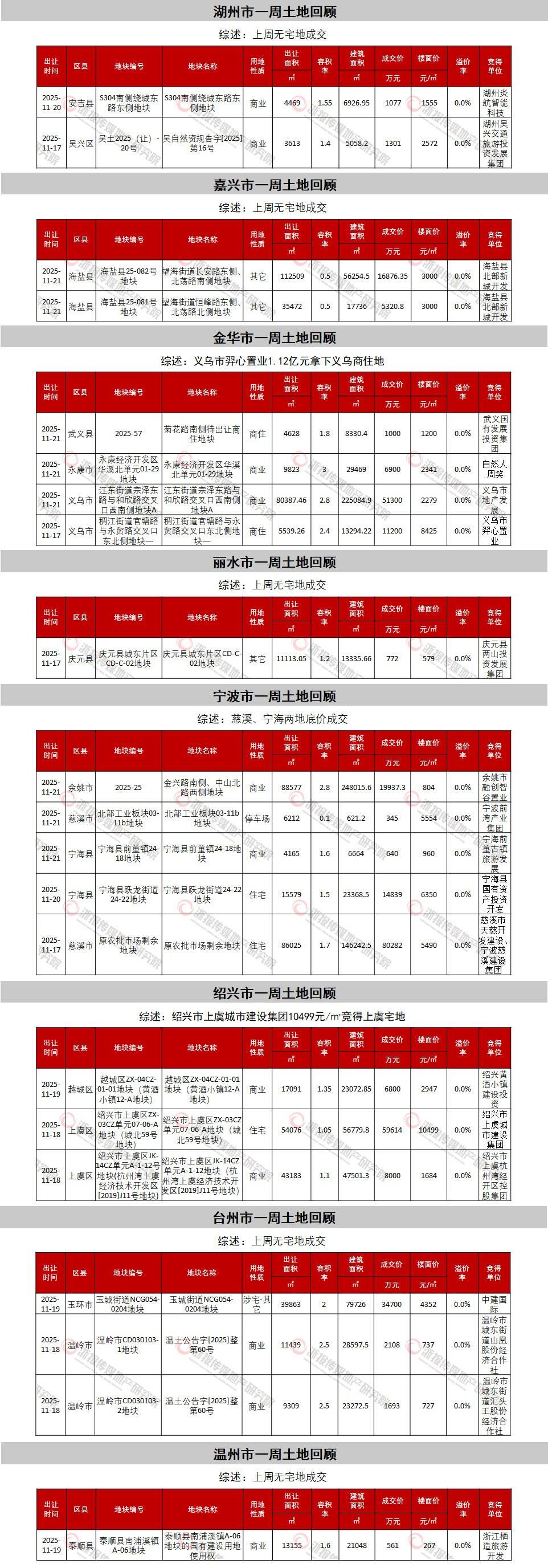 本周浙报传媒地产研究院对省内8个城市土地出让进行7场直播: