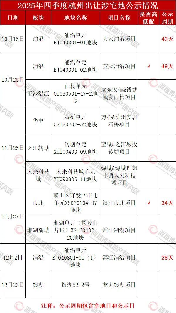 住在杭州网1月6日讯(记者 岑天宇)2025年杭州市区(市十区)共出让92宗涉宅地,其中共有80宗涉宅地在年内就完成了项目公示,公示率高达87%,平均公示周期为47.7天。未公示的12个项目,有一半为四季度出让土地。