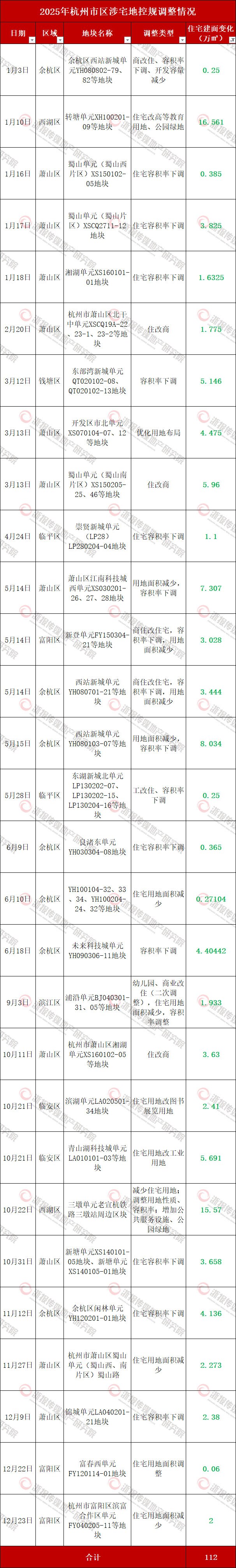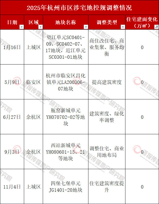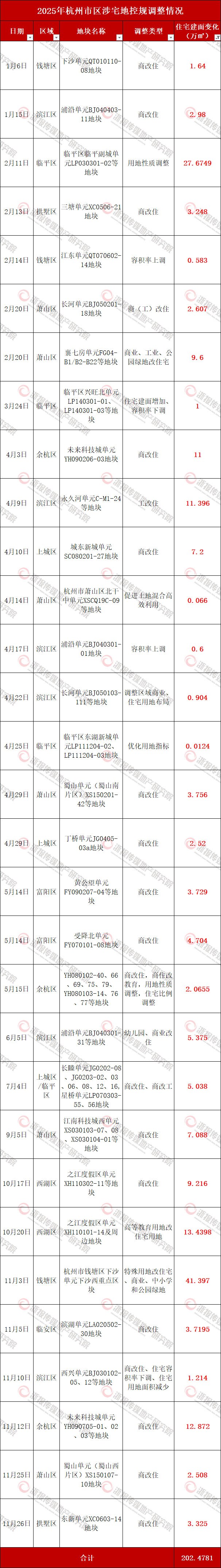 杭州2025控规调整盘点:商改住建面超100万㎡ 多城区宅地降容