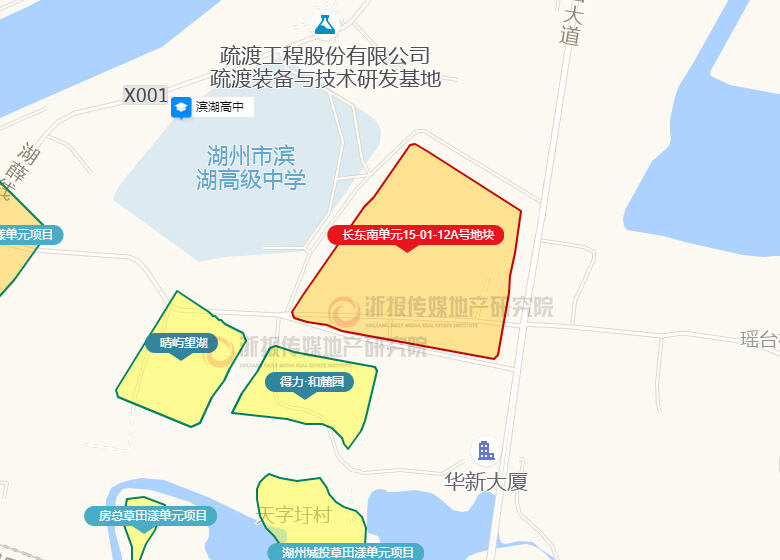 地块位于长东片区南侧区域,西面即为杭州市滨湖高级中学,南侧有湖州市中心医院,其他生活配套仍在不断完善之中。