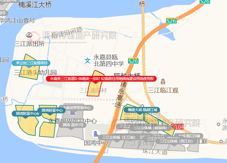 温州永嘉地块处于三江商务区,周边有三江街道办事处、新希望立体城购物中心、永嘉世界贸易中心等。地块出让面积58411.42㎡,容积率1.05,可建面积61331.99㎡。最终,地块由本地民企楠盛集团底价竞得,总价42300万元,成交楼面价6897元/㎡。