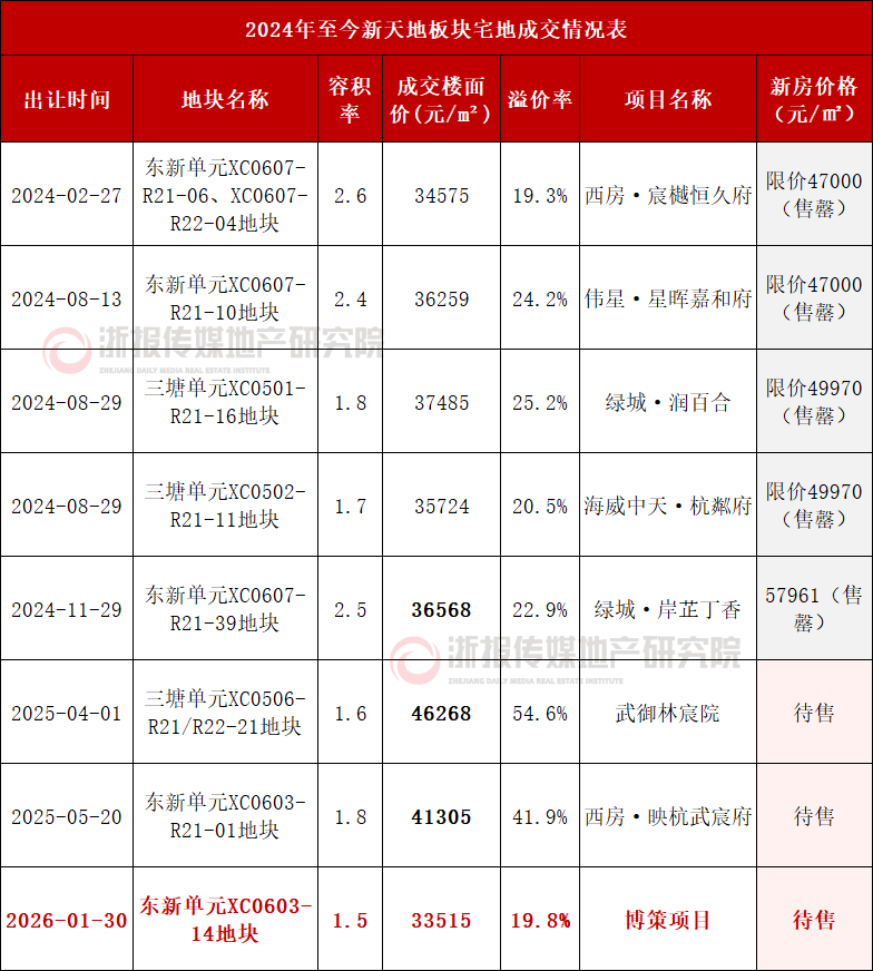 1.30杭州土拍点评:新天地宅地溢价未过20% 各板块地价回调成趋势?
