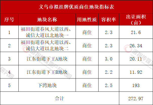 义乌市拟挂牌优质商住地块指标图
